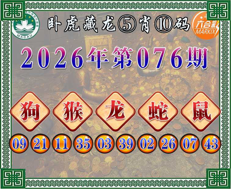 076期:〖卧虎藏龙〗 📙⑤肖⑩码📙【狗猴龙鼠】开:蛇02