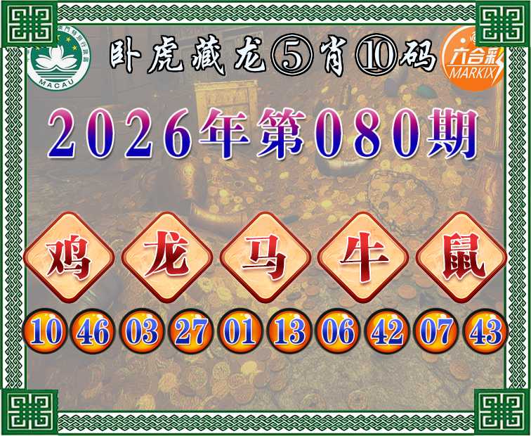 080期:〖卧虎藏龙〗 📙⑤肖⑩码📙【鸡马牛鼠】开:龙03