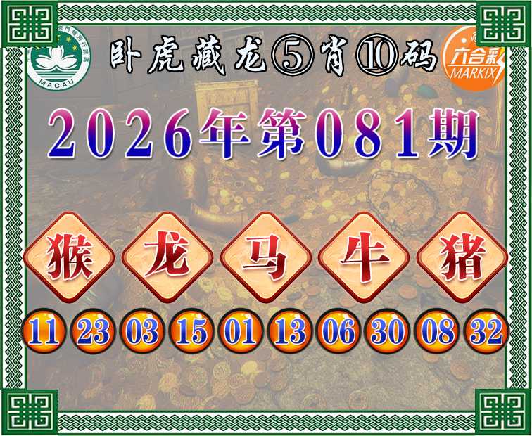 081期:〖卧虎藏龙〗 📙⑤肖⑩码📙【猴龙马牛猪】开:虎17