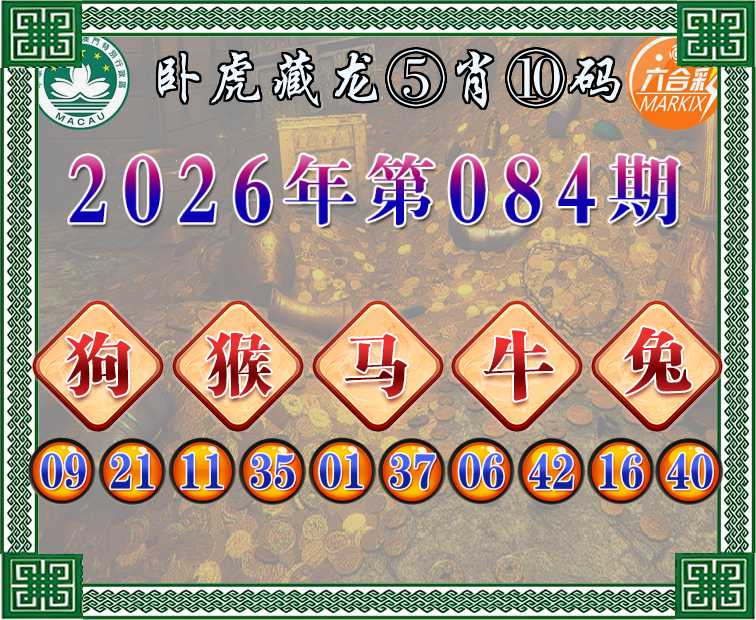 084期:〖卧虎藏龙〗 📙⑤肖⑩码📙【狗猴马牛】开:兔16