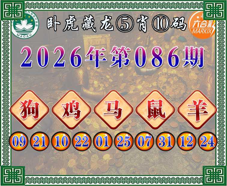 086期:〖卧虎藏龙〗 📙⑤肖⑩码📙【狗鸡马鼠】开:羊12
