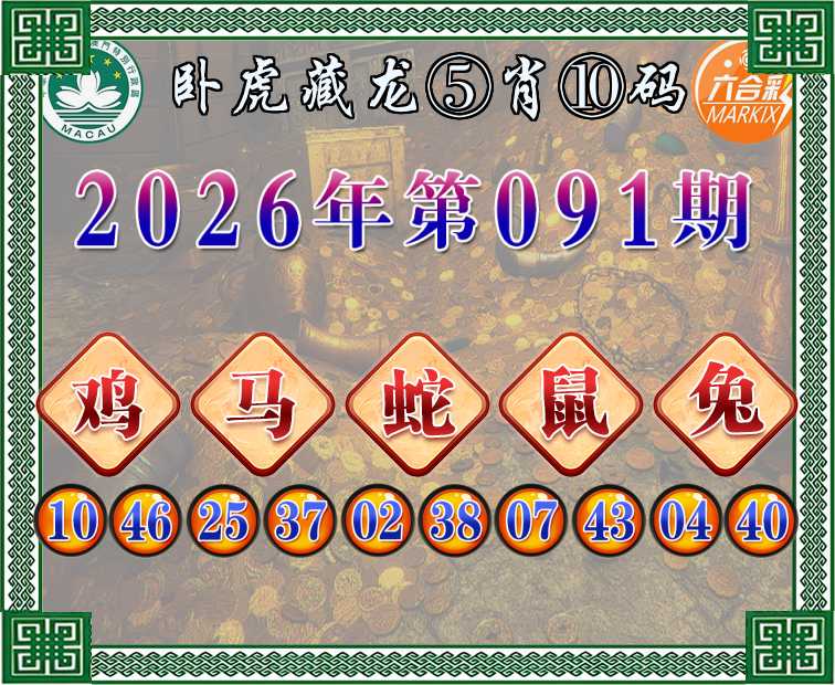 091期:〖卧虎藏龙〗 📙⑤肖⑩码📙【鸡蛇鼠兔】开:马37