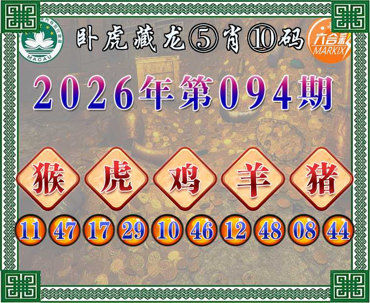 094期:〖卧虎藏龙〗 📙⑤肖⑩码📙【猴鸡羊猪】开:虎17