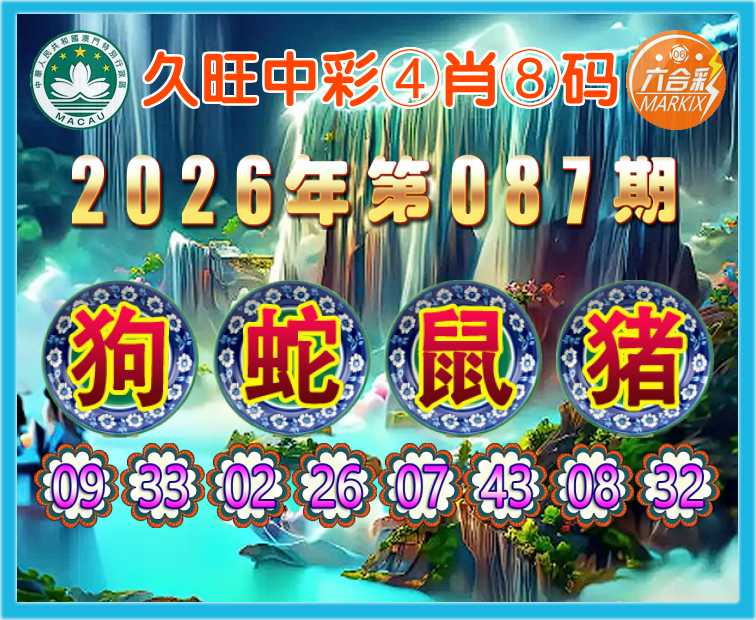 087期: 🍀『久旺中彩』 🍀④肖⑧码🍀【狗鼠猪】开:蛇26