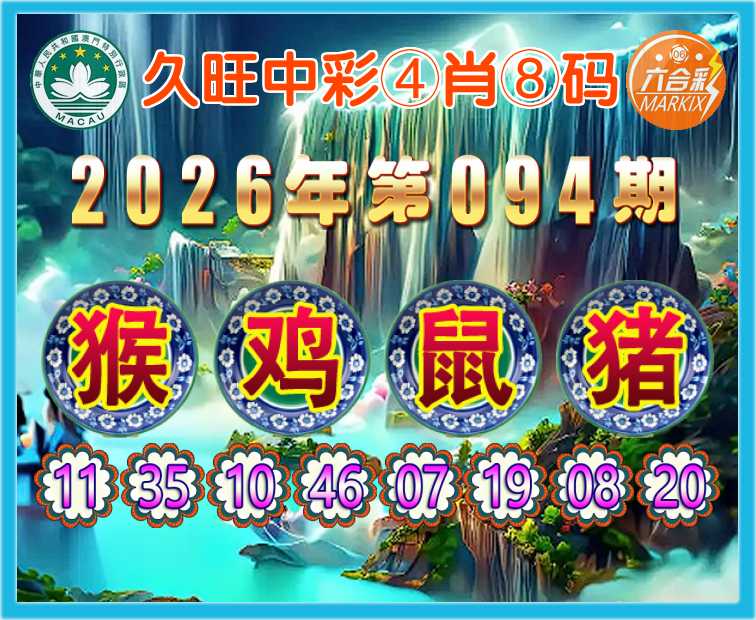 094期: 🍀『久旺中彩』 🍀④肖⑧码🍀【猴鸡鼠猪】开:虎17
