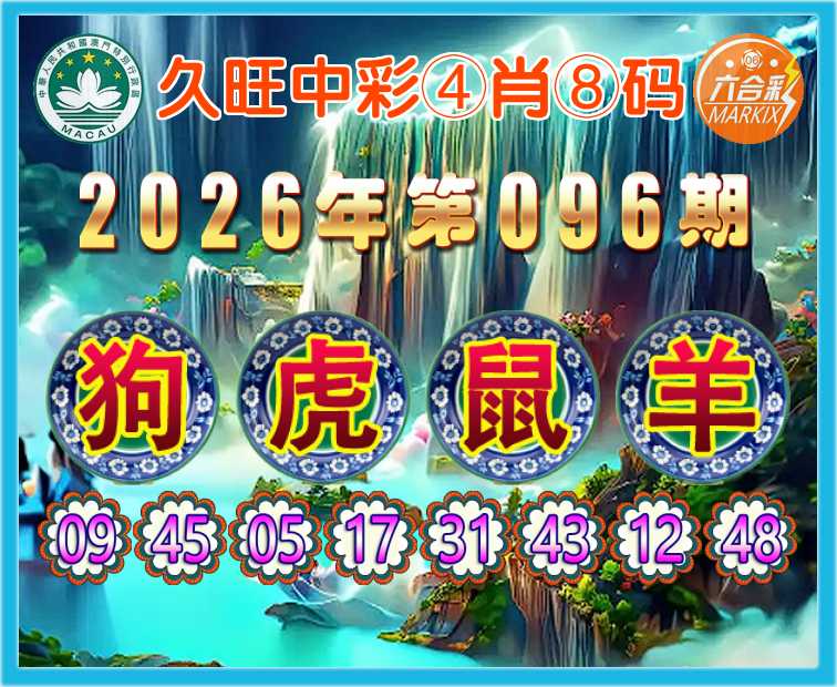 096期: 🍀『久旺中彩』 🍀④肖⑧码🍀【狗虎羊】开:鼠43