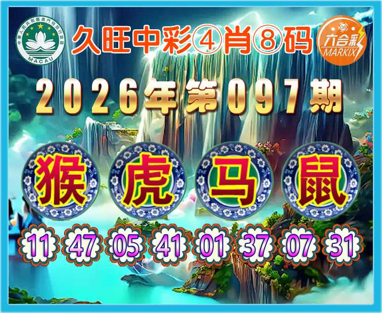 097期: 🍀『久旺中彩』 🍀④肖⑧码🍀【虎马鼠】开:猴11