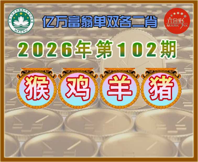 102期:《亿万富翁》 ☝️单双各二肖☝️【猴.鸡.羊.猪】开:00准